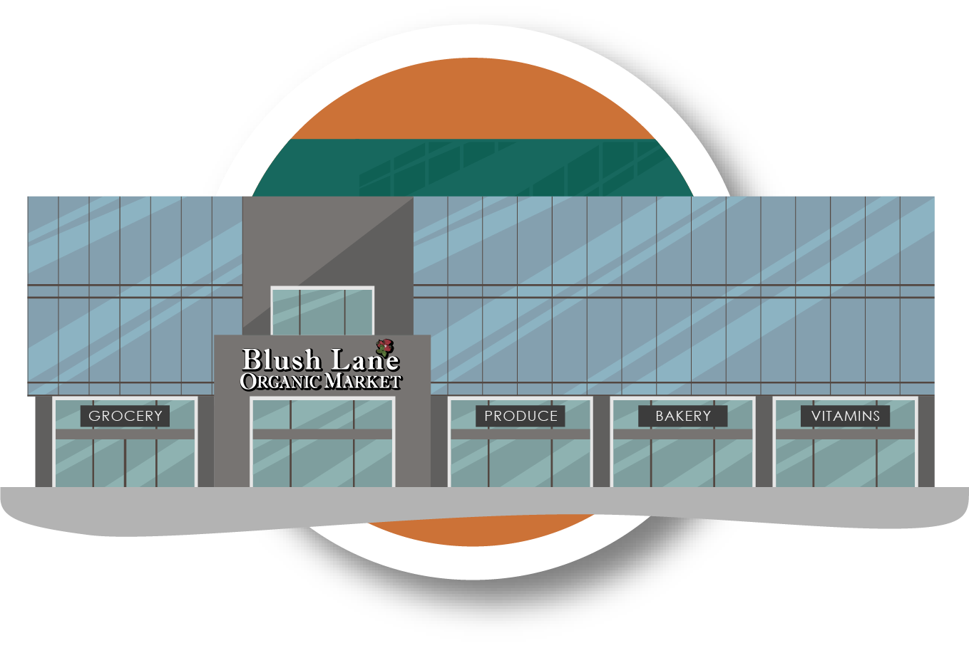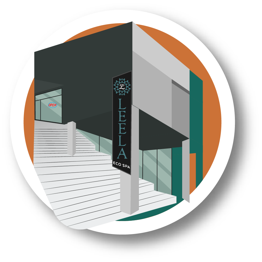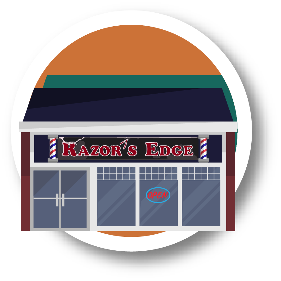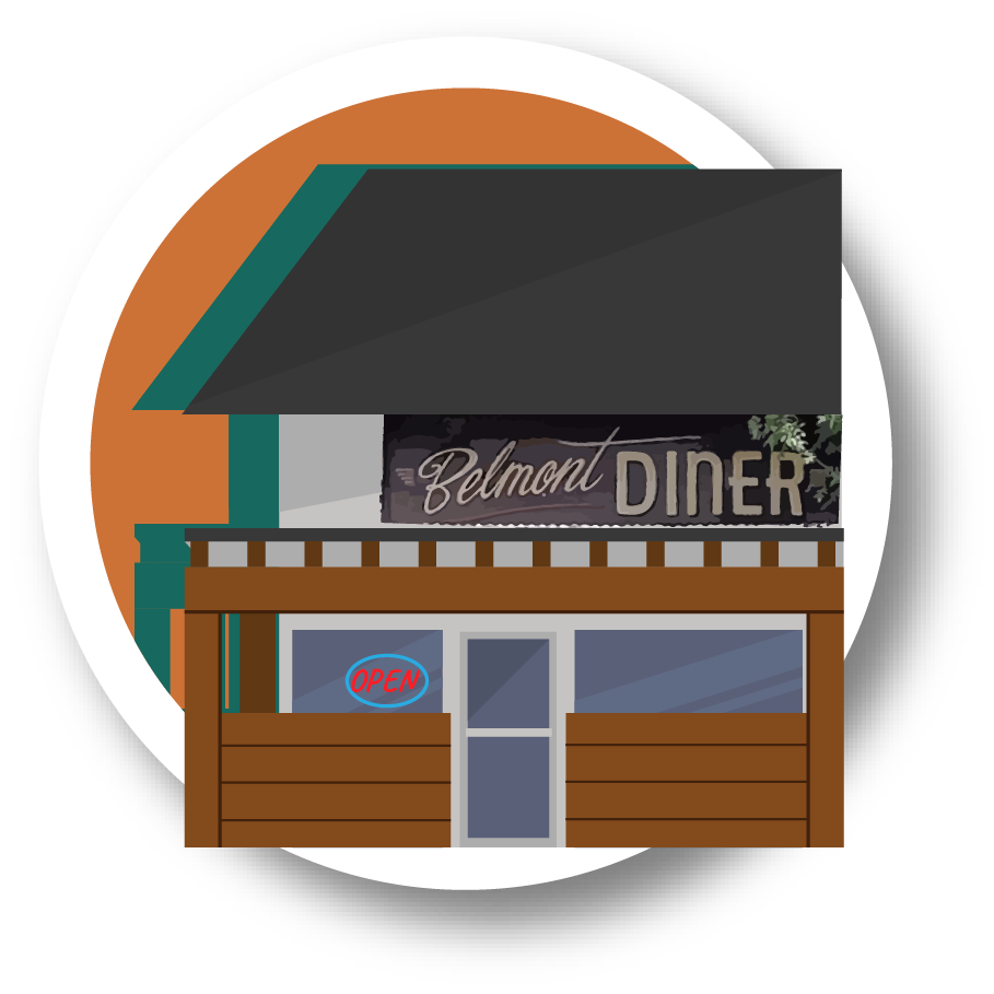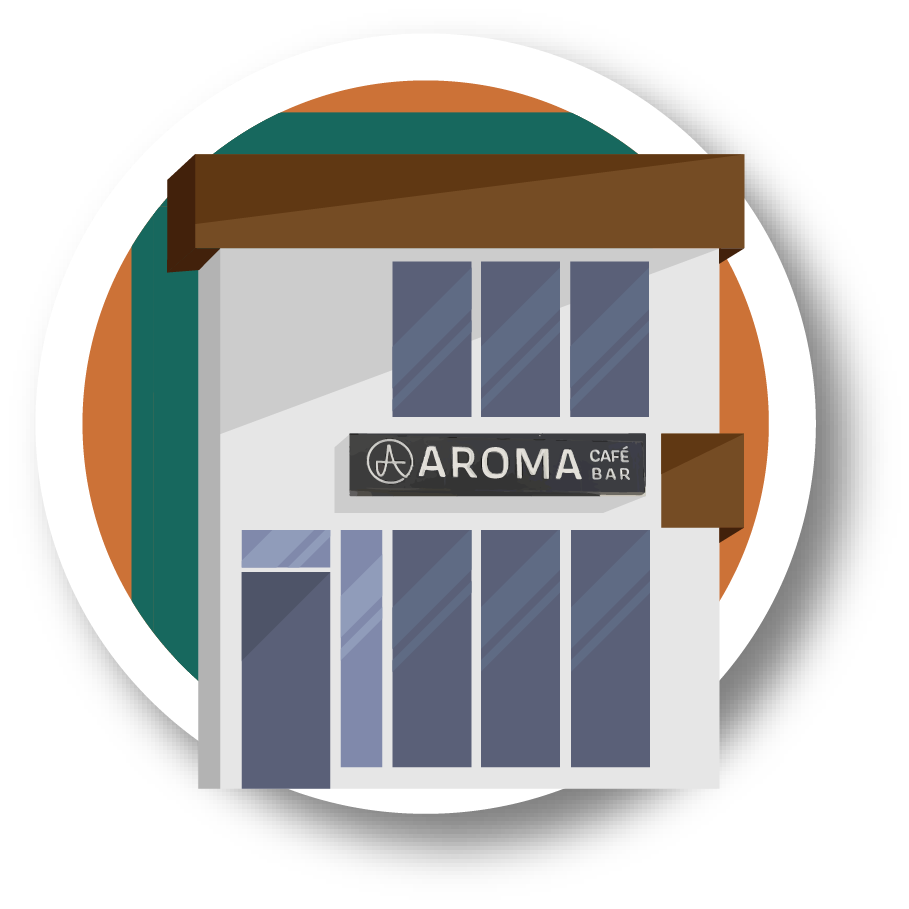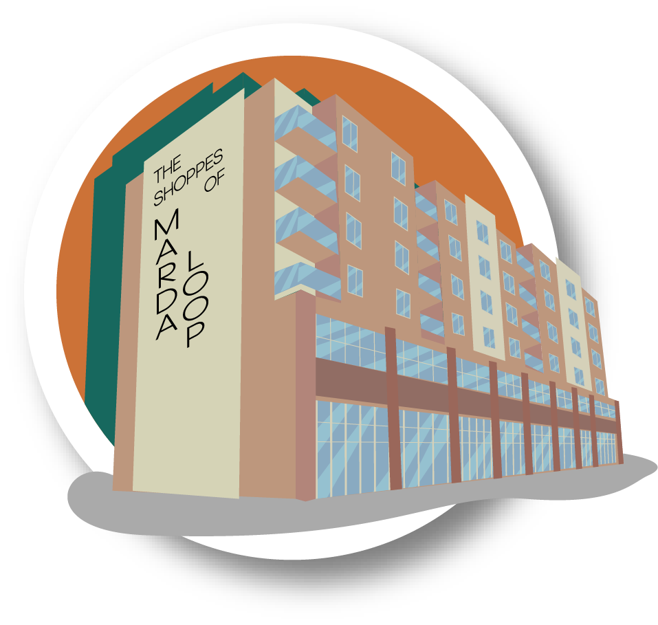Vector illustrations of various businesses located in Marda Loop, Calgary